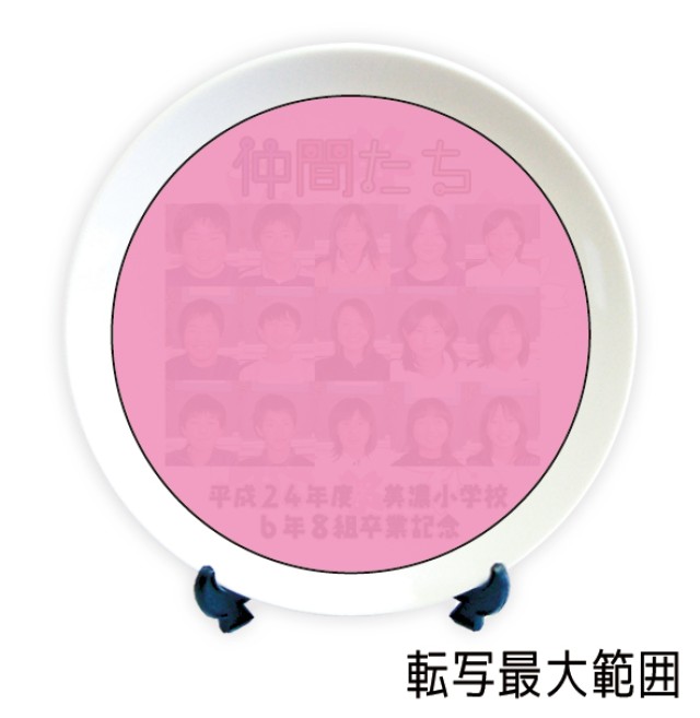 | 仕様 | 飾り皿でのみ使用可。実用不可。 薄いフィルム上の転写シートをお皿に張り、焼成することでお皿にデザインが定着します。転写のフチにうっすらと段差ができます。 段差が気になる方はオリジナル写真ワイド皿をご検討ください。 |