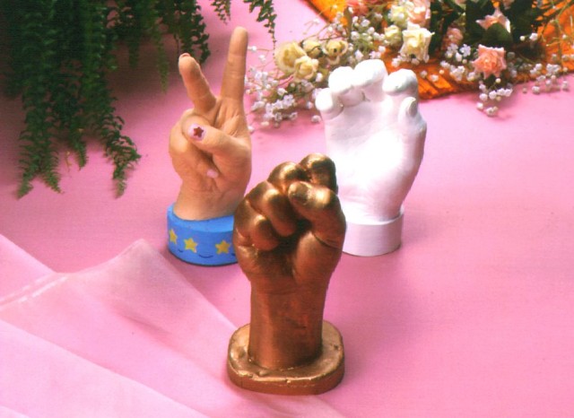 - モデリングのカタチは自由自在・・・液状から固形に変わる型取り材なので、指紋などの細部まで表現できます