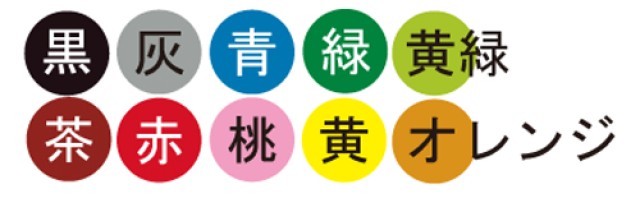 | 色 | 黒、グレー、青、緑、黄緑、茶、赤、桃、黄、オレンジ |